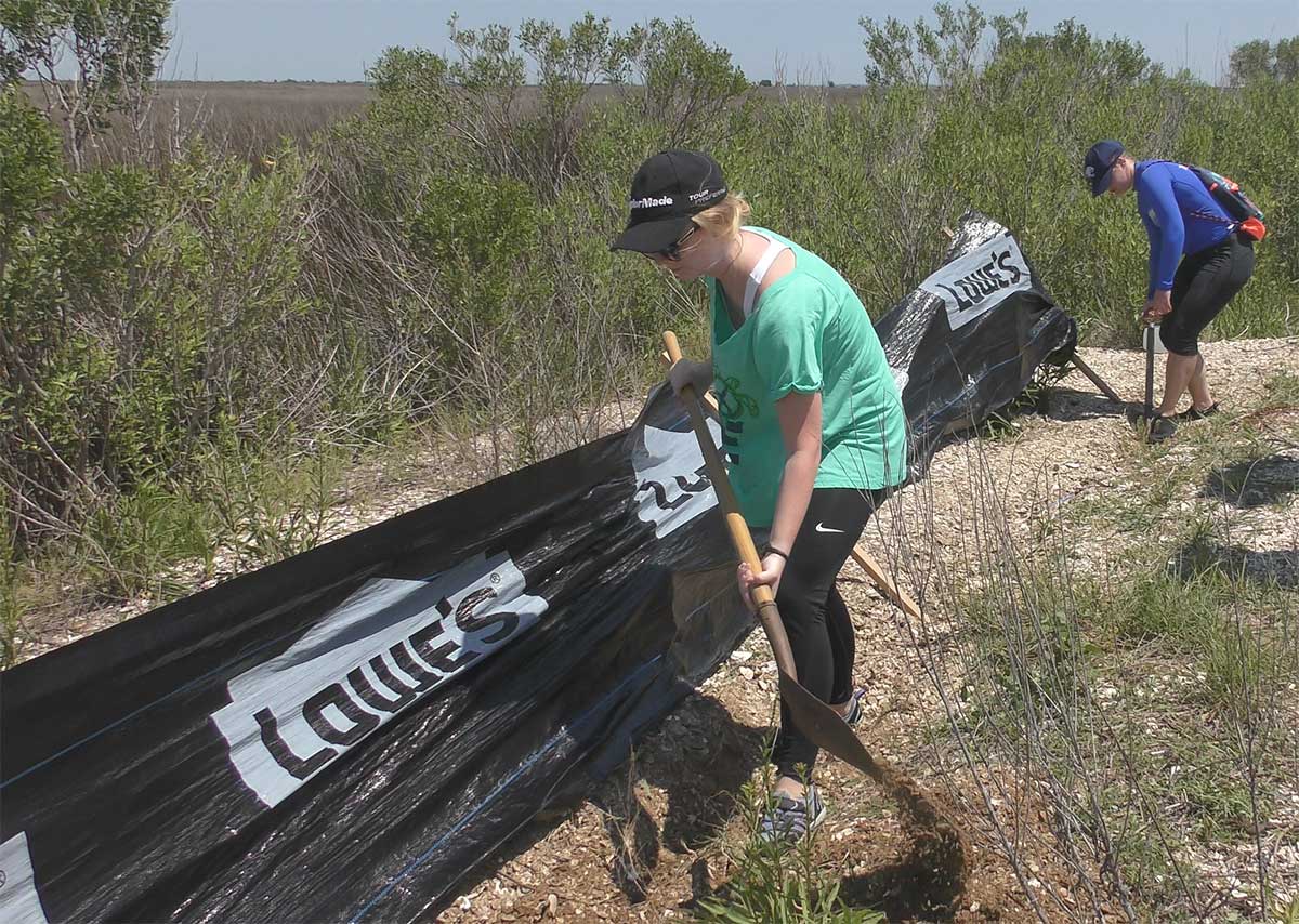 Spring Hill College sophomore Taylor Lewis helps to dig a trench during the Marine Turtle Conservation Course taught by UAB's Dr. Thane Wibbles.